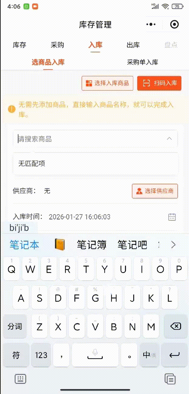 在点点库存中入库时,如果系统中没有该商品,您无需提前手动创建。通过入库单即可直接添加,系统将自动同步生成对应的商品档案。