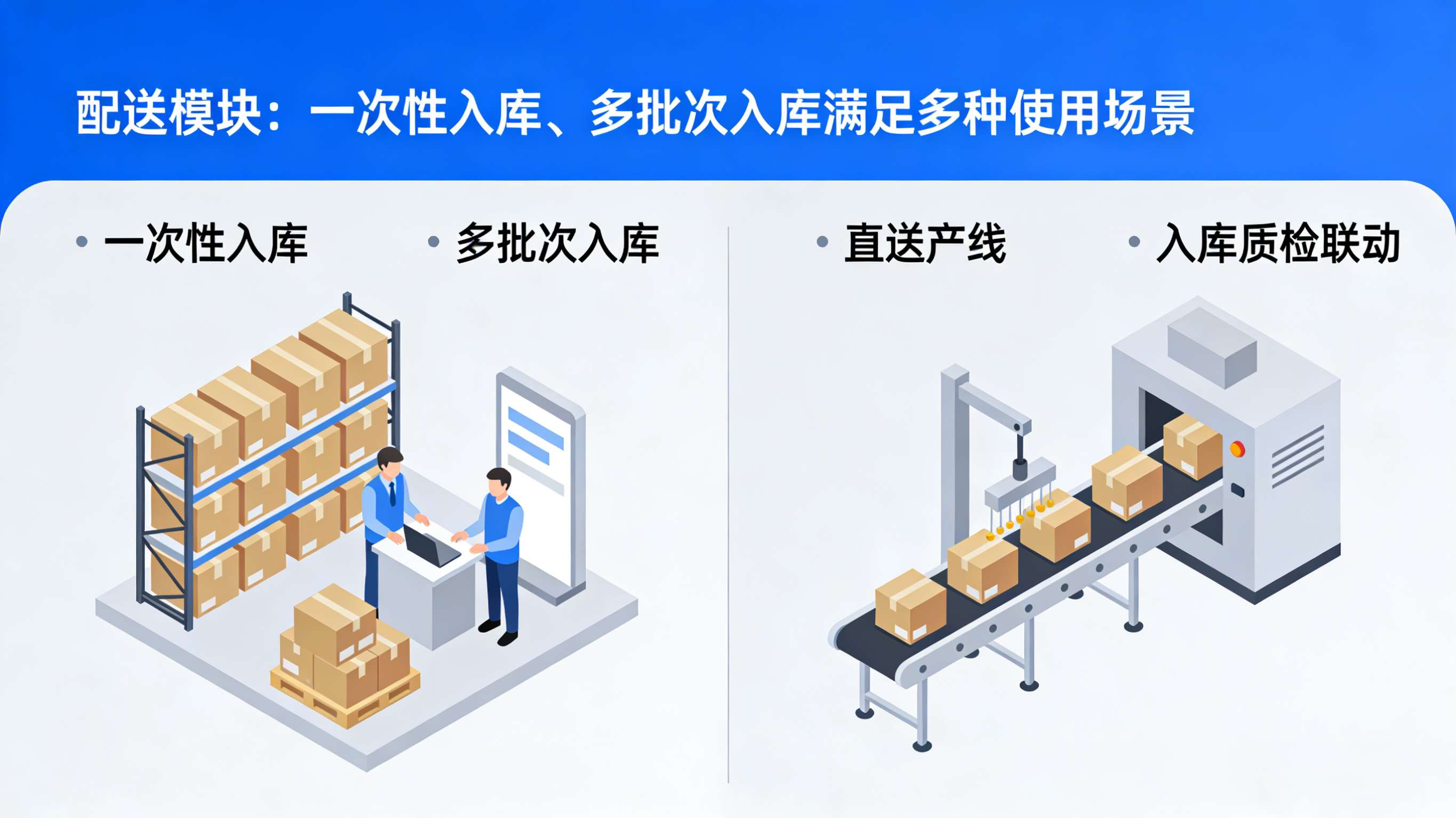 配送模块:一次性入库、多批次入库满足多种使用场景