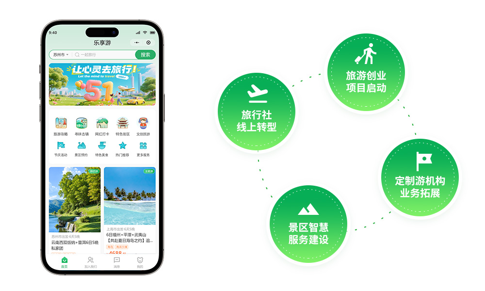 在文旅行业加速数字化升级的背景下,旅游企业对线上运营、用户服务、营销转化及合规管理提出了更高要求。旌展信息科技立足行业实际需求,自主研发「乐享游」旅游小程序,为旅行社、文旅机构、研学平台等各类经营主体,提供一站式、轻量化、可扩展的数字化运营解决方案。