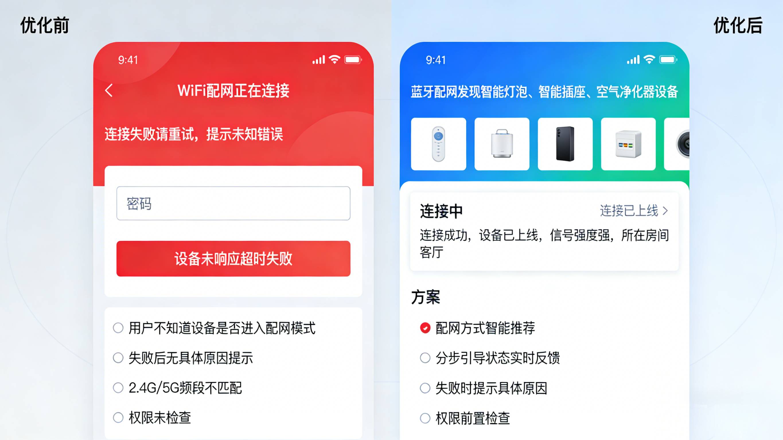 现象:用户按说明操作,但APP一直卡在“连接中”,最终提示“配网失败”。客服电话被打爆,退货率上升。