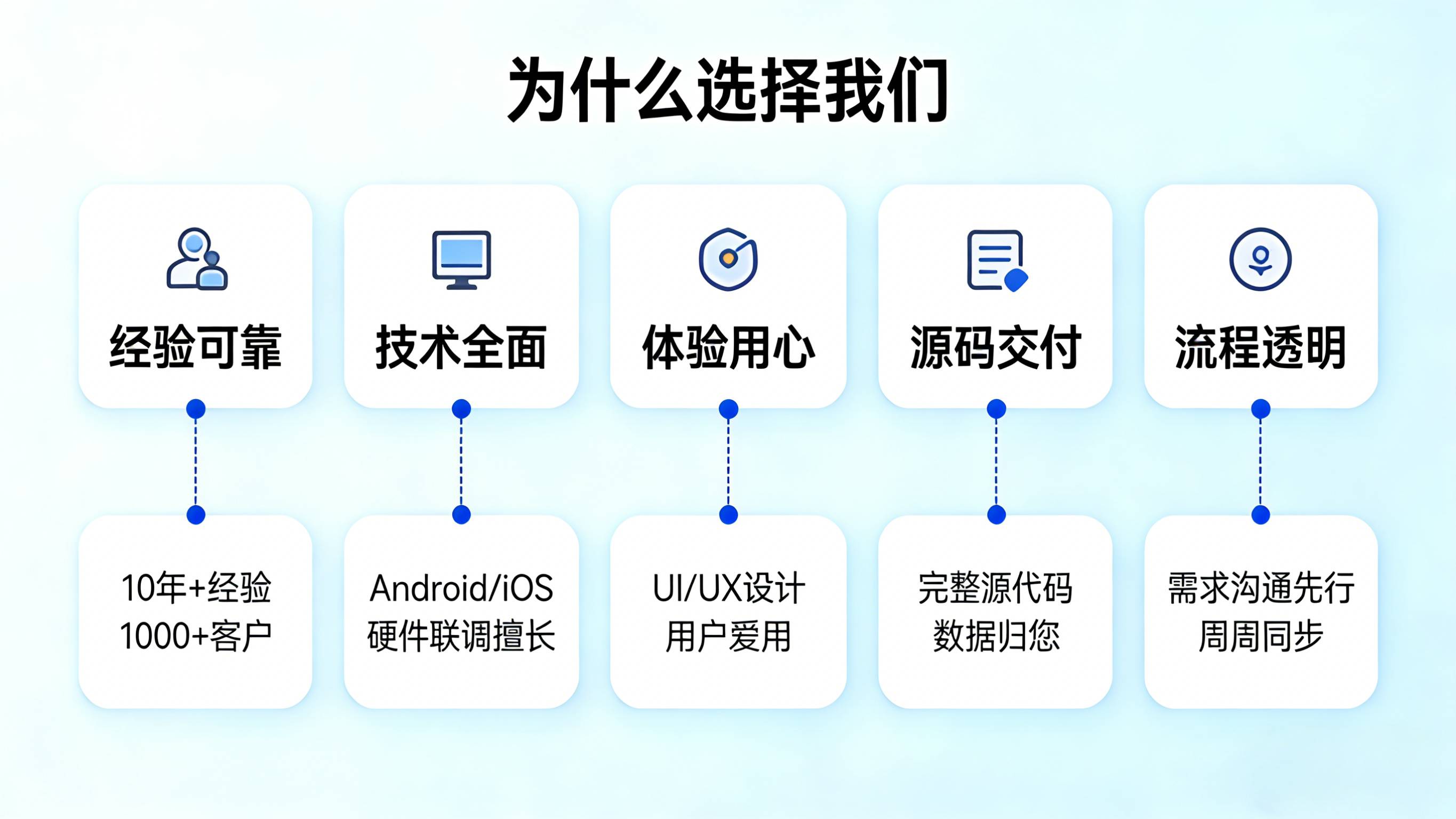 敏捷交付: 从需求梳理、UI设计到测试上架,我们采用敏捷开发模式,快速迭代,让您的产品抢先一步占领市场。